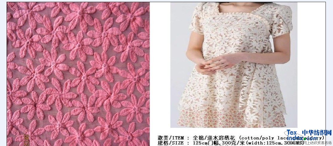 產(chǎn)品關(guān)鍵字:人絲/人棉,繡花,針織,棉/棉錦,滌綸