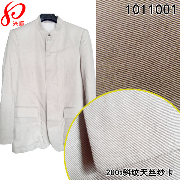 該面料為100%全天絲面料,21S*21S斜紋天絲布,氣流缸染色