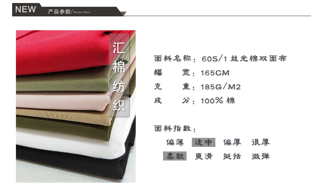 產(chǎn)品關(guān)鍵字:絲光棉布,絲光棉面料,絲光棉雙面布,絲光棉雙面汗布,絲光棉布料