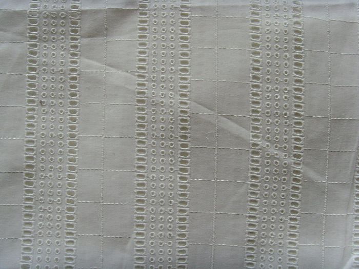 本公司擁有進(jìn)口蘇拉大機(jī) 八臺(tái),專業(yè)生產(chǎn)全棉打孔繡花,網(wǎng)布繡花,水溶繡花,牛奶絲刺繡,歐根紗繡花,花邊和各類裙邊花等面料上的打孔繡花布,另公司新增小機(jī)平繡機(jī)五十臺(tái),真誠(chéng)的希望能與各位同仁合作,對(duì)于此信息進(jìn)行咨詢和留言