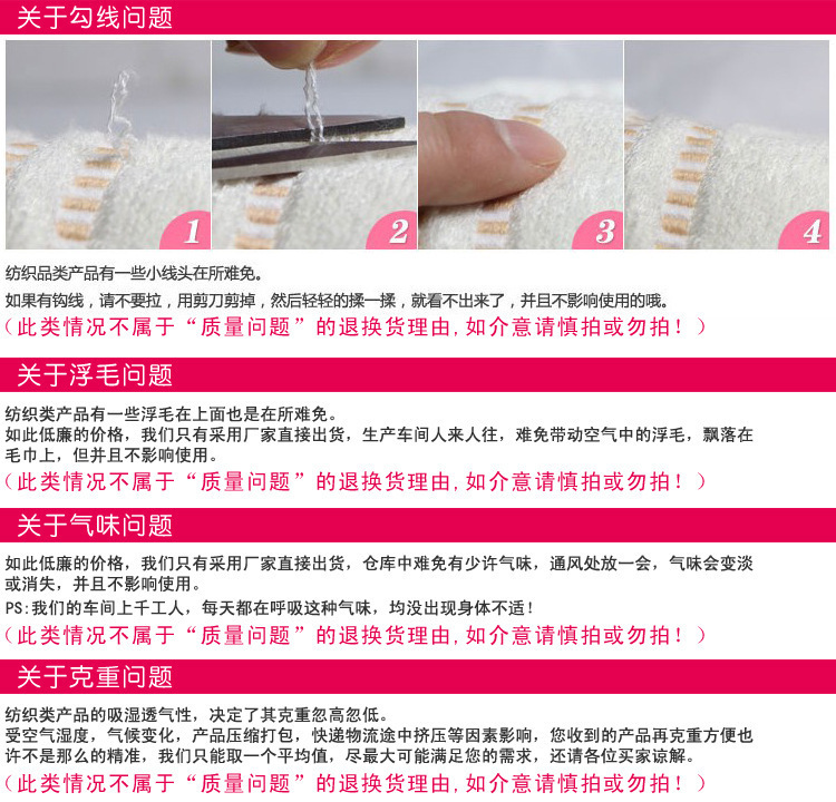 (1)毛巾廠家,三年內(nèi)無任何質(zhì)量問題,沒有”好”評(píng)都是”很好”