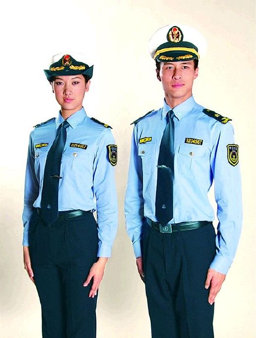 中國(guó)海監(jiān)制服共有春秋裝、冬裝、夏裝、防寒服、制式毛衣、作訓(xùn)服、連體工作服、標(biāo)志服飾、制式帽子、作訓(xùn)帽、皮鞋等品種。春秋裝、冬裝、夏褲和裙裝選用藏青色為主體色彩,搭配淺藍(lán)色襯衫,體現(xiàn)執(zhí)法部門莊重、嚴(yán)謹(jǐn)?shù)穆殬I(yè)特點(diǎn),領(lǐng)帶選擇深藍(lán)色,金色金屬和絲織標(biāo)志配飾用來(lái)點(diǎn)綴整體服裝。該系列服裝將春秋裝、冬裝的款式由原來(lái)的西裝樣式改為國(guó)內(nèi)外制式服裝主流的獵裝樣式,制式長(zhǎng)、短袖襯衣由小翻領(lǐng)夾克款式調(diào)整為立領(lǐng)束腰式。新增加的胸標(biāo)、號(hào)牌、臂章等服飾標(biāo)志,增強(qiáng)了海監(jiān)服裝的識(shí)別功能,強(qiáng)化了制服的美感