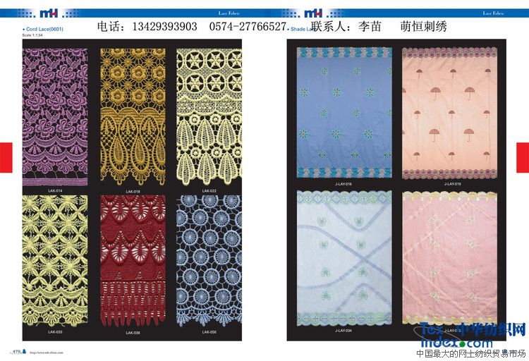 專門生產(chǎn)花邊布;網(wǎng)布;婚紗布;燙鉆花邊;玻璃紗;TC花邊;定型紗; 水溶花邊;等服裝敷料;公司主要產(chǎn)品出口東南亞,南美等地、公司現(xiàn)已獲得ISO9001:2000質(zhì)量體系認(rèn)證,連續(xù)3年外貿(mào)誠信企業(yè)“AAA”已連續(xù)5年被寧波市工商行政管理局評為“重合同守信用企業(yè)”?!懊群恪惫臼菍幉ㄊ姓攸c(diǎn)扶持的品牌企業(yè)。萌恒工貿(mào)有限公司專業(yè)生產(chǎn)各種類型的花邊及提花織帶等產(chǎn)品,廣泛用于服裝.箱包.鞋帽等,公司擁有先進(jìn)的生產(chǎn)設(shè)備:電腦提花織機(jī).整燙機(jī).經(jīng)編機(jī).圓盤機(jī)等.可按客戶的要求設(shè)計出滿意的產(chǎn)品.對于此信息進(jìn)行咨詢和留言