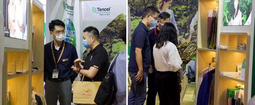 開展首日,中國紡織工業(yè)聯(lián)合會嘉賓團以及業(yè)內(nèi)重要嘉賓紛紛到訪蘭精展位,通過近距離參觀交流,親身體驗天絲™纖維開啟的零碳之旅。