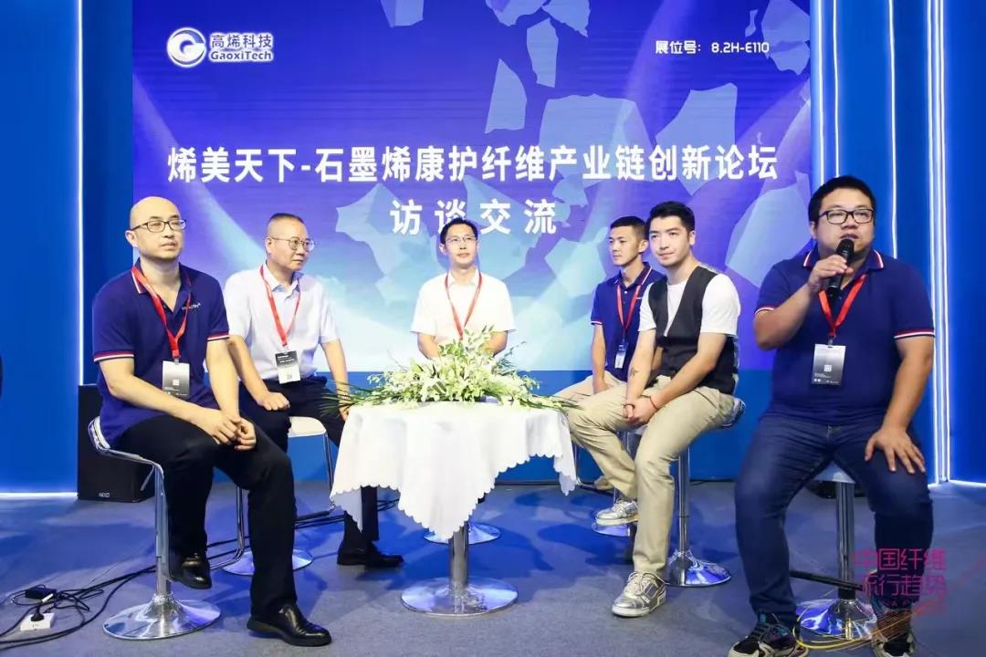 在產(chǎn)業(yè)鏈訪談環(huán)節(jié),高超、夏小龍、趙斌元、汪洋、麻紀(jì)、韓燚,圍繞十四五”期間高烯重點(diǎn)發(fā)展規(guī)劃、全套單層石墨烯技術(shù)解決方案涵蓋內(nèi)容、石墨烯產(chǎn)業(yè)鏈合作推廣、高烯石墨烯復(fù)合纖維如何賦能高端品牌等內(nèi)容,探尋石墨烯纖維在發(fā)展過(guò)程中的新挑戰(zhàn)、新機(jī)遇、新趨勢(shì)。