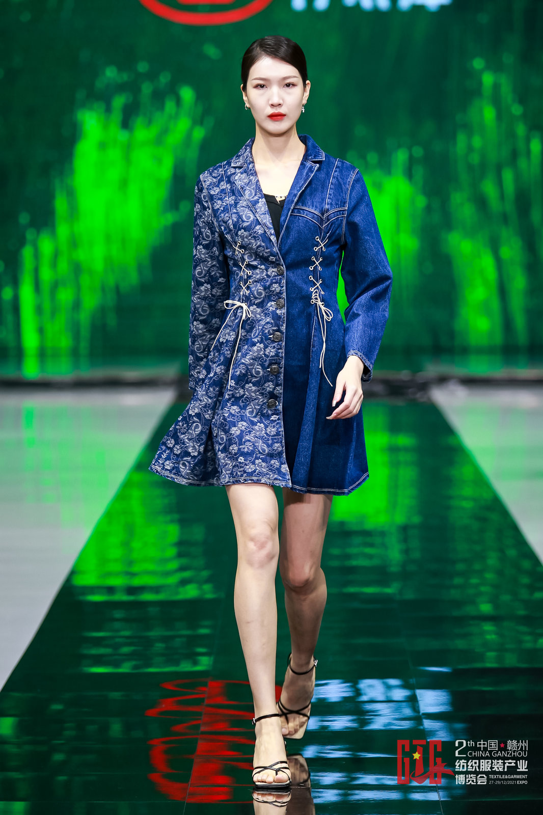 仔衣庫以綠色科技作為時尚的永動力,與時尚美學(xué)結(jié)合,將身體需求而誕生的新科技與視覺審美融合,喚醒具有中國牛仔特色的新風(fēng)尚。12月27日,贛州于都本土?xí)r尚品牌——仔衣庫,在 “2021中國(贛州)紡織服裝原創(chuàng)設(shè)計周”演繹了綠色科技牛仔時裝發(fā)布秀。