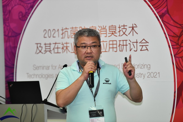 2021年抗菌防臭/消臭技術及其在襪業(yè)中的應用研討會近日在上海召開。本次研討會由中關村匯智抗菌新材料產業(yè)技術創(chuàng)新聯(lián)盟(以下簡稱“抗菌產業(yè)聯(lián)盟”)、全國衛(wèi)生產業(yè)企業(yè)管理協(xié)會抗菌產業(yè)分會(以下簡稱“抗菌協(xié)會”)共同主辦,妙抗保國際(亞洲)有限公司、廣東省微生物分析檢測中心、泉州市隱形盾鞋服科技有限公司、上海潤河納米科技有限公司和上海艾歌展覽服務有限公司共同協(xié)辦。在抗菌產業(yè)聯(lián)盟/抗菌協(xié)會秘書長張迎增先生主持下,來自廣東省微生物研究所、東華大學、通標標準技術服務有限公司、妙抗保國際(亞洲)有限公司、上海愛麗紡織技術檢驗有限公司、泉州隱形盾鞋服科技有限公司等單位的專家,向80余位現(xiàn)場來賓分享了抗菌技術及其在襪業(yè)中最新應用。