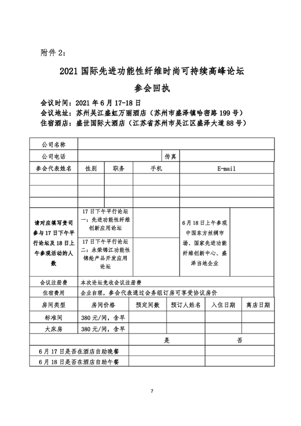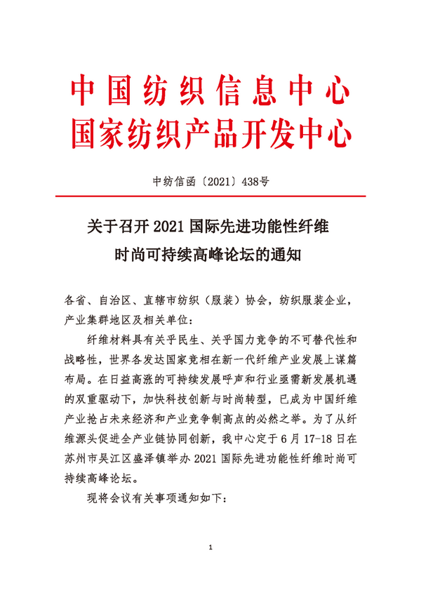 2021國際先進(jìn)功能性纖維時(shí)尚可持續(xù)高峰論壇將于6月17-18日在蘇州市吳江區(qū)盛澤鎮(zhèn)舉辦2021國際先進(jìn)功能性纖維時(shí)尚可持續(xù)高峰論壇!