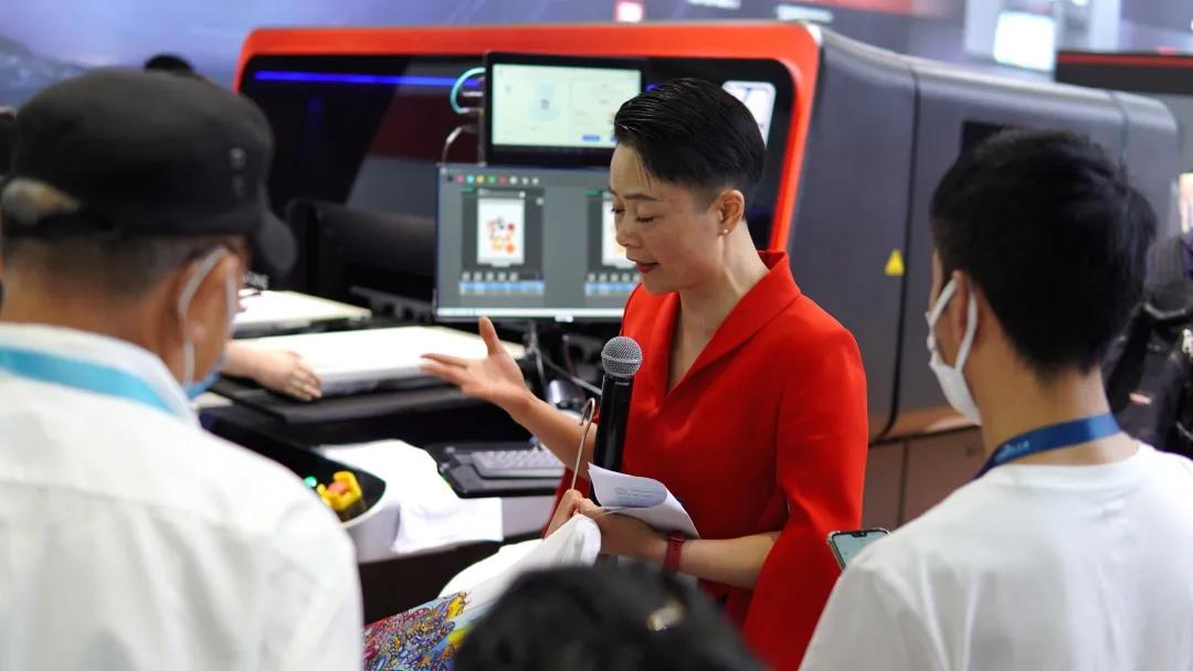 眾多媒體在ITMA展會(huì)現(xiàn)場(chǎng)見(jiàn)證漢印新品發(fā)布