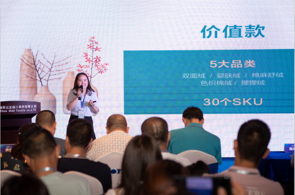 發(fā)布會(huì)現(xiàn)場(chǎng),華燈璀璨音樂激揚(yáng)。公司執(zhí)行董事郭杰發(fā)表熱情洋溢的講話。全國勞動(dòng)模范、際華3542公司布機(jī)車間教練工劉沙上臺(tái)為際華家紡代言。