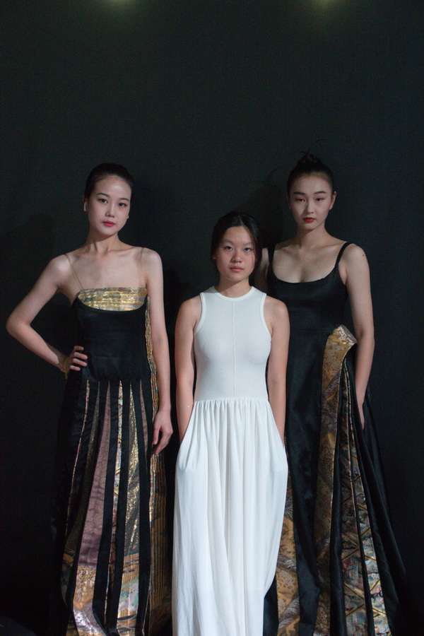 本次發(fā)布會主題為:“華裳初見”,匯集了服裝與服飾設(shè)計專業(yè)2022屆畢業(yè)生的70余件優(yōu)秀設(shè)計作品,作品將中式傳統(tǒng)服裝的形制和結(jié)構(gòu)特征,與法國高定服飾元素結(jié)合,并融入當(dāng)代審美和實用需求。運用解構(gòu)、重組等創(chuàng)新現(xiàn)代設(shè)計手法運用,和刺繡、緙絲、印染等傳統(tǒng)工藝手法,將傳統(tǒng)紋樣與制作工藝融入現(xiàn)代設(shè)計中,探索中國傳統(tǒng)服飾文化和法國時尚文化之間的平衡,在設(shè)計細節(jié)上摒棄過度的修飾與堆砌的設(shè)計,從而保持服飾本身的節(jié)奏美,賦予設(shè)計作品新的藝術(shù)生命。