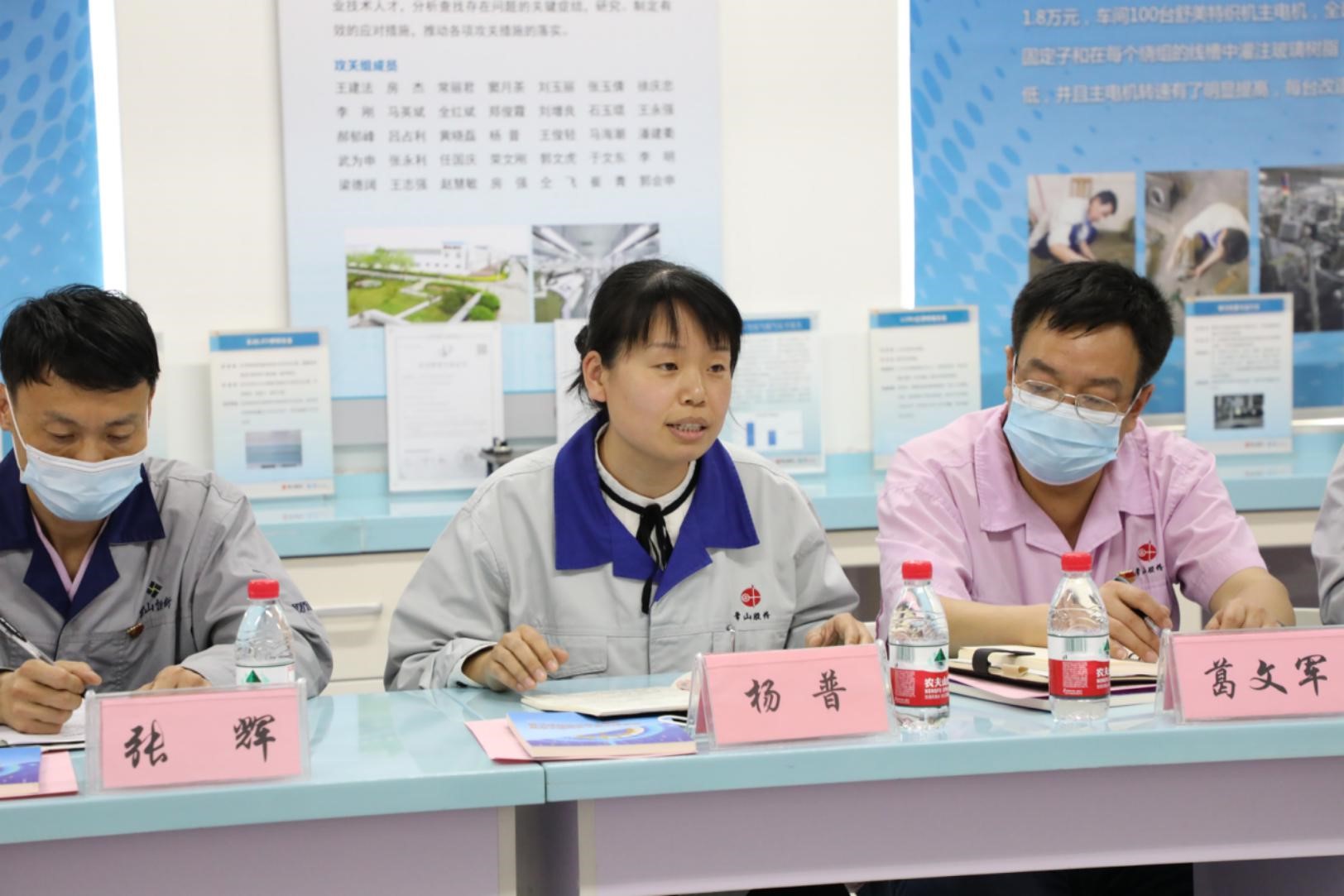 “2021年葛文軍創(chuàng)新工作室完成3項創(chuàng)新攻關(guān)活動:紗廠能源管理系統(tǒng),生產(chǎn)單耗降低6.8%,約噸紗降低成本200元;空調(diào)回風(fēng)加裝變頻器,滿足車間工藝要求;生產(chǎn)污水利用,節(jié)約水費約15萬元;2022年攻關(guān)方向:粗紗機吸棉風(fēng)機改造、細(xì)紗機行走電機改造、智能制造系統(tǒng)改造升級?!薄拔覀兾罕侗秳?chuàng)新工作室2021年技術(shù)成果《一種絡(luò)筒機捻腔體》獲得發(fā)明專利,2022年我們將再接再厲,爭取創(chuàng)造更多技術(shù)成果?!薄皬堓x創(chuàng)新工作室主要體現(xiàn)在節(jié)能降耗方面,2021年節(jié)能降耗近40萬元,同時,積極對標(biāo)魏倍倍創(chuàng)新工作室,目前,一項《一種吊裝工具》成果正在申報實用新型專利?!薄拔覀兾杭蚜夹g(shù)創(chuàng)新工作室2022年主要解決F1520負(fù)壓吸風(fēng)改造、F1520的生產(chǎn)能力提升、鋼絲圈掛花清潔裝置、鋼領(lǐng)及鋼絲圈潤滑處理等技術(shù)問題”。