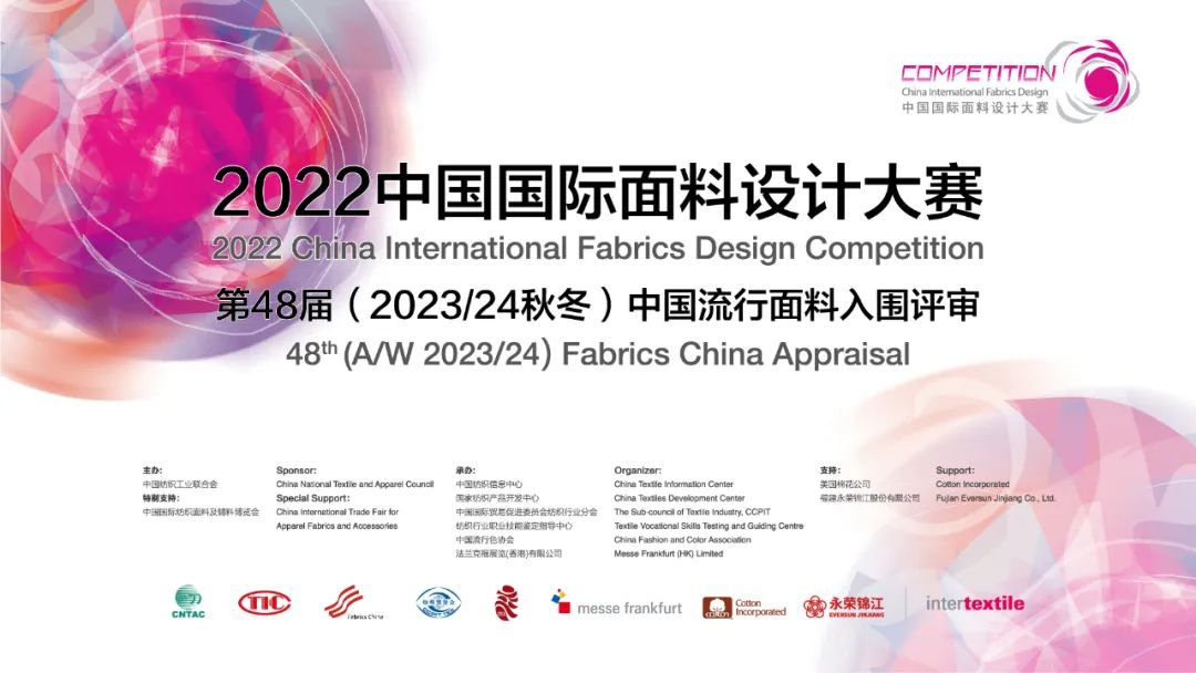 中國(guó)國(guó)際面料設(shè)計(jì)大賽活動(dòng)由中國(guó)紡織工業(yè)聯(lián)合會(huì)主辦,中國(guó)紡織信息中心、國(guó)家紡織產(chǎn)品開發(fā)中心、中國(guó)國(guó)際貿(mào)易促進(jìn)委員會(huì)紡織行業(yè)分會(huì)、紡織行業(yè)職業(yè)技能鑒定指導(dǎo)中心、中國(guó)流行色協(xié)會(huì)、法蘭克福展覽(香港)有限公司等單位共同承辦,是中國(guó)紡織面料設(shè)計(jì)領(lǐng)域最具權(quán)威性和影響力的專業(yè)賽事。