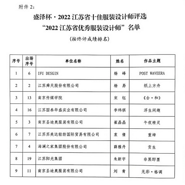 附件:關(guān)于公布盛澤杯.2022江蘇省十佳服裝設(shè)計(jì)師評(píng)選終評(píng)結(jié)果的通知
