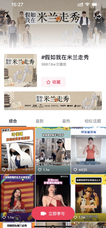 截至收官,服飾行業(yè)參與活動(dòng)商家新品支付環(huán)比提升60%,240款新品破百萬(wàn)。傳播層面,在平臺(tái)的撮合下,劉畊宏、戚薇、舒暢、李金銘、許佳琪Kiki等明星領(lǐng)銜,豆豆_babe、痞幼、梅尼耶、墊底辣孩、劉思瑤、方圓、柴碧云、胡楚靚等百位達(dá)人參與話題活動(dòng),活動(dòng)主話題#世界在趕東方潮 抖音播放量達(dá)6.1億次,UGC衍生話題#假如我在米蘭走秀 沖上抖音熱點(diǎn)總榜TOP2,關(guān)聯(lián)話題#劉畊宏夫婦去米蘭啦 、#許佳琪與張柏芝舒暢合照 等5個(gè)話題成為微博熱搜話題。