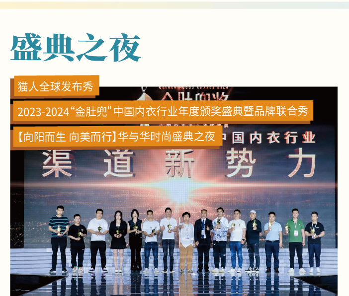 作為內(nèi)衣業(yè)的“奧斯卡”獎(jiǎng)——金肚兜獎(jiǎng),以行業(yè)至高榮譽(yù)褒獎(jiǎng)過去一年在內(nèi)衣產(chǎn)業(yè)創(chuàng)新、渠道創(chuàng)新、產(chǎn)品創(chuàng)新等方面做出卓著貢獻(xiàn)的企業(yè)。同時(shí)更有頗具前瞻看點(diǎn)的貓人全球發(fā)布秀、華與華時(shí)尚盛典之夜,盡展品牌新姿,掀起時(shí)尚新風(fēng)潮,將為觀眾帶來精彩紛呈的視聽盛宴。