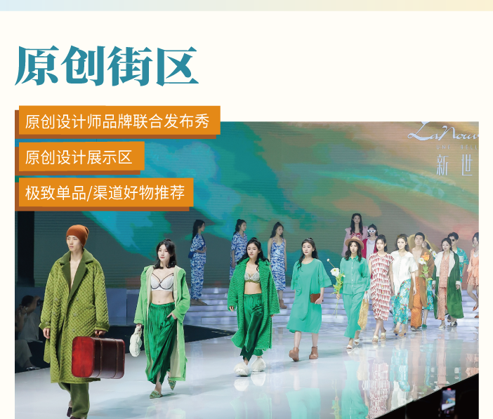 集合潮流新品及趨勢概念,傳達(dá)創(chuàng)新設(shè)計(jì)感悟,通過秀場、展區(qū)及論壇活動(dòng),直觀展示內(nèi)衣穿搭新趨勢,內(nèi)衣單品設(shè)計(jì)要點(diǎn),未來趨勢面輔料產(chǎn)品,為內(nèi)衣行業(yè)震撼呈現(xiàn)一場融合中國設(shè)計(jì)精神和全球內(nèi)衣潮流的感官盛會(huì)。
