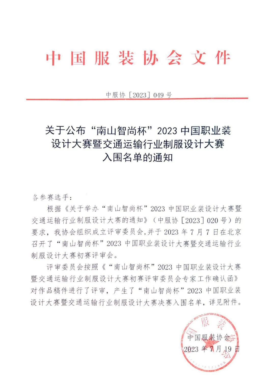關于公布“南山智尚杯”2023中國職業(yè)裝設計大賽