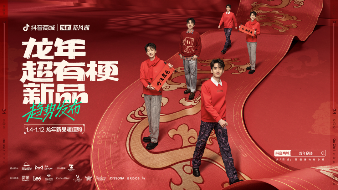 龍年春節(jié)漸近,大家紛紛添置新衣,美美地打扮自己,為辭舊迎新增添一份喜慶。今年,抖音電商大服飾行業(yè)活動「抖in新風潮」在年貨節(jié)前重要節(jié)點,前瞻性洞察龍年穿搭新趨勢,打造龍年潮流熱點,推出「龍年超有梗新品趨勢發(fā)布」主題活動,制定趣味策略玩法,聯(lián)動明星達人、頭部品牌,助力服飾品牌新品種草,為參與品牌帶來2024年生意開門紅!