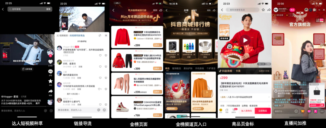 為了幫助品牌商家實現(xiàn)全域爆發(fā),「抖in新風潮·龍年超有梗」活動提供了多元玩法,聯(lián)動內(nèi)容場和貨架場,幫助商家快速匹配興趣人群,加速貨品實現(xiàn)快速爆量,助力商家生意成交。