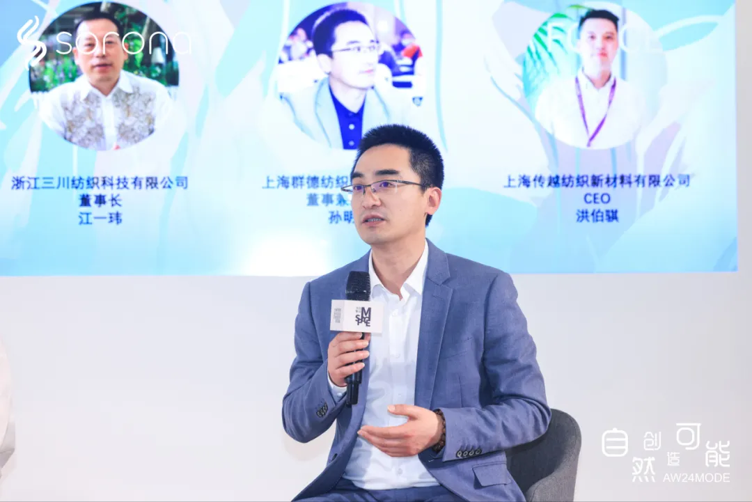 長期戶外活動不僅會對服裝面料提出更高的耐用性和功能性需求,對自然的尊重和保護(hù)也成為關(guān)注重點(diǎn)。在生產(chǎn)、使用乃至最后廢棄的全生命周期過程中,服裝面料在提升各項(xiàng)性能的同時,如何減少對環(huán)境的負(fù)面影響,成為當(dāng)下關(guān)注可持續(xù)時尚發(fā)展的服裝面料企業(yè)共同思考的問題。“SORONA®自然創(chuàng)造可能”論壇上,SORONA®大中華區(qū)市場經(jīng)理李克潔,與浙江三川紡織科技有限公司董事長、紹興市中小紡織企業(yè)促進(jìn)會會長江一瑋,上海群德紡織科技有限公司董事兼總經(jīng)理孫明亮,上海傳越紡織新材料有限公司CEO洪伯騏三位SORONA®的優(yōu)選面料合作伙伴展開圓桌對話,就如何利用SORONA®這一可以幫助面料做到功能性與環(huán)保基因疊加的生物基材料,賦能面料創(chuàng)新開發(fā)作出分享。