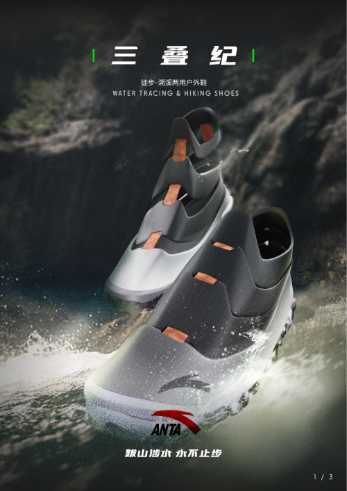 最終,楊夢(mèng)石、胡若晨、寧津、張浩宇設(shè)計(jì)的"三疊紀(jì)”徒步-湖溪兩用戶外鞋"獲得鞋品組的金獎(jiǎng);賈三川、茹晨、李文心、佟童設(shè)計(jì)的運(yùn)動(dòng)生活概念作品《 Lan Breath》獲得服配組金獎(jiǎng)。