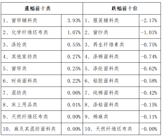 三、服裝面料環(huán)比回縮,價格指數(shù)環(huán)比小跌