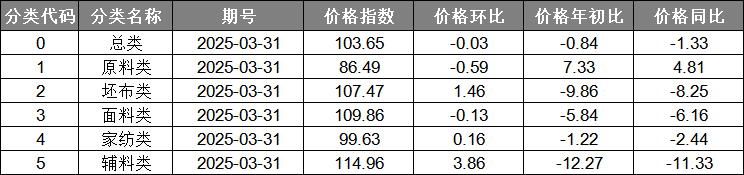 中國·柯橋紡織指數(shù)|20250331期價格指數(shù)