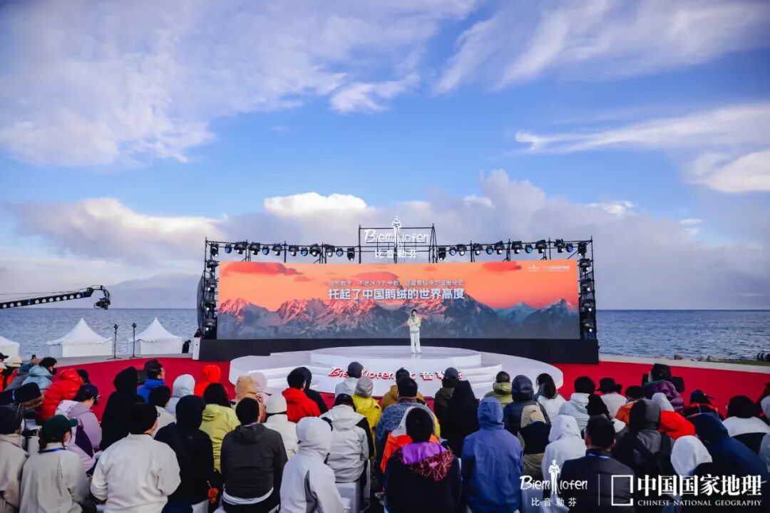中國(guó)國(guó)家地理雜志社社長(zhǎng)兼總編輯李栓科、中國(guó)國(guó)家地理發(fā)行公司總經(jīng)理李寧、中國(guó)服裝協(xié)會(huì)常務(wù)副會(huì)長(zhǎng)謝青、中國(guó)紡織信息中心副主任李波、比音勒芬集團(tuán)總經(jīng)理謝邕、比音勒芬品牌大使胡一天、比音勒芬品牌大使李蘭迪、中央廣播電視總臺(tái)主持人大賽金獎(jiǎng)得主蔡紫等百余位嘉賓驚喜現(xiàn)身賽里木湖畔,共同暢聊來(lái)自東方的世界好鵝絨。