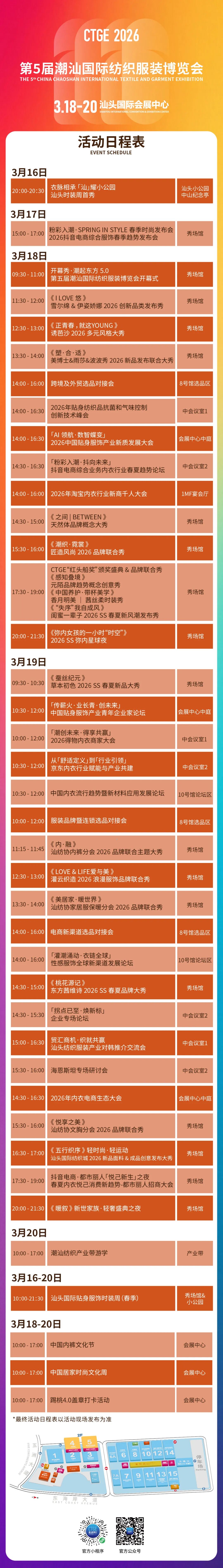 最全展會(huì)活動(dòng)日程表公布,長(zhǎng)按收藏!3月18-20日,行業(yè)前沿、無限商機(jī),我們汕頭國(guó)際會(huì)展中心見!