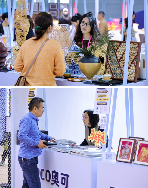 “萬象奇市”創(chuàng)意市集另辟蹊徑,14家原創(chuàng)品牌將非遺竹編、天然水晶、潮玩IP融入軟裝,成為展會中最具煙火氣與創(chuàng)意感的打卡地。