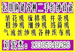 山東玉河二手紡織設(shè)備有限公司,是一家多年經(jīng)營二手紡織設(shè)備收購并出售,以調(diào)劑為主的企業(yè),我公司長期現(xiàn)金收購整套或單臺二手紡織機(jī)械,回收已停產(chǎn)的紡織廠設(shè)備,積極參加公平公正競拍活動,出售的二手紡織設(shè)備保證其生產(chǎn)能力及質(zhì)量,擁有技術(shù)熟練的國棉廠在職安裝工人為紡織企業(yè)提供設(shè)備的拆裝車服務(wù),公司擁有6000平方放置設(shè)備倉庫兩個,常年備有二手紡機(jī)及附屬配件供紡織企業(yè)選擇,所有二手設(shè)備性能優(yōu)良,保證正常運(yùn)轉(zhuǎn),讓客戶無后顧之憂,專心專業(yè)為紡織企業(yè)服務(wù)是我們永恒的宗旨! 常年收購并出售進(jìn)口和國產(chǎn)整套或單臺:二手清花機(jī)/二手梳棉機(jī)/二手并條機(jī)/二手粗紗機(jī)/二手細(xì)紗機(jī)/二手自動絡(luò)筒機(jī)/二手氣流紡紗機(jī)/二手除塵機(jī)/二手紡織實驗儀器/二手紡織附屬配件/誠信經(jīng)營!合作共贏!歡迎新老客戶來電洽談?wù)埪?lián)系《劉經(jīng)理手機(jī)微信13305349286》