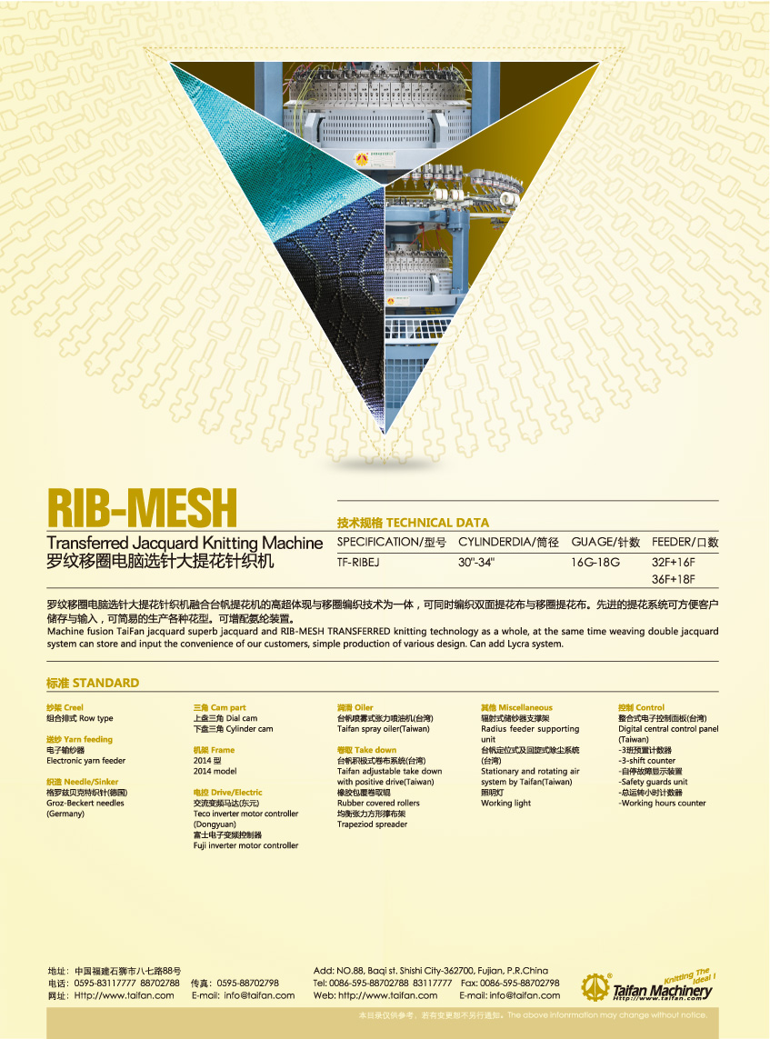 關(guān)鍵字:大圓機,電腦選針針織機,羅紋