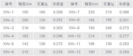 具體產(chǎn)品,其冷感值列示如下: