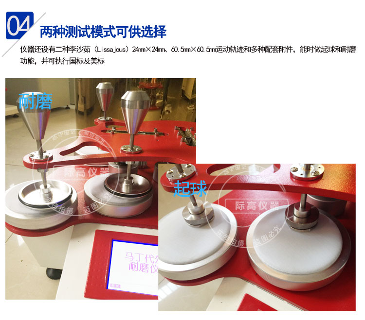 2、多種測(cè)試模式可供選擇,同時(shí)做起球和耐磨功能,并可執(zhí)行國(guó)標(biāo)及美標(biāo)