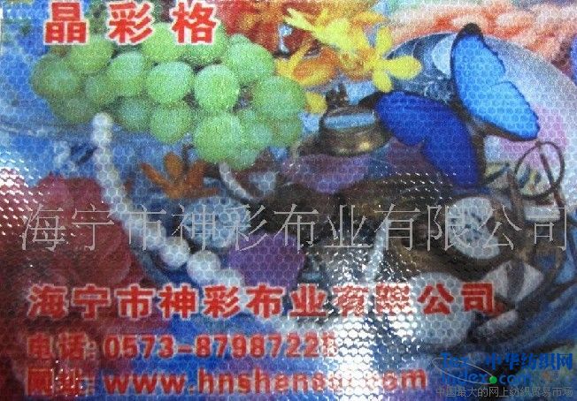 浙江海寧神彩布業(yè)有限公司復(fù)合涂層新材料有限公司是一家專業(yè)生產(chǎn)涂層布,燈箱布、噴繪布、防水布、篷布等產(chǎn)品的企業(yè)。我公司自2005年成立以來,一直致力于PVC涂層布、篷布、夾網(wǎng)布、燈箱布、噴繪布等產(chǎn)品的生產(chǎn)和研究,現(xiàn)已形成了一套獨特的生產(chǎn)技術(shù),來提高產(chǎn)品的質(zhì)量和性能。公司產(chǎn)品在國內(nèi)外市場上都有著極佳的口碑。我公司地處浙江省海寧市經(jīng)編產(chǎn)業(yè)園區(qū),環(huán)境優(yōu)良,交通便利。全體神彩人也在繼續(xù)努力,并真誠期待和您一起共謀企業(yè)的發(fā)展,共同開創(chuàng)出一條神彩騰飛之路!神彩誠摯期待與您的合作,并隨時歡迎您到我公司參觀考察!對于此信息進行咨詢和留言