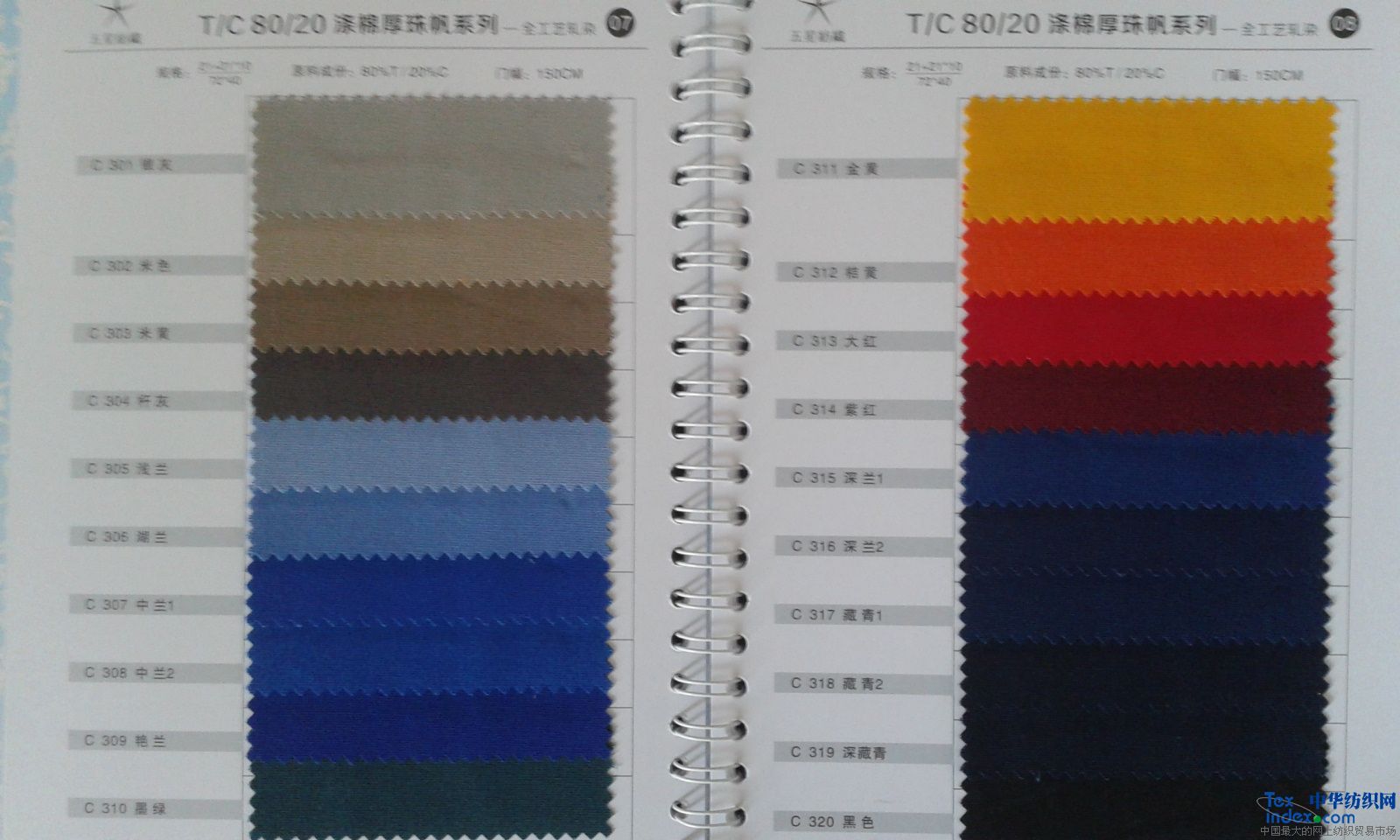 | 150 | C301-320 | 滌棉厚珠帆 | T/C 80/20 | (21+21)*10 72*40 | |||
