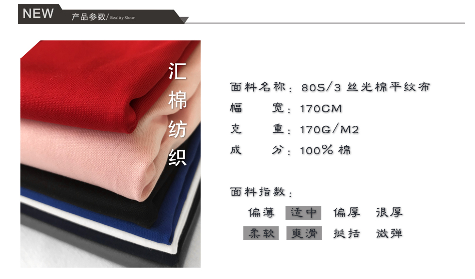 產(chǎn)品關(guān)鍵字:純棉面料,汗布,絲光棉,素色平紋布,絲光棉布