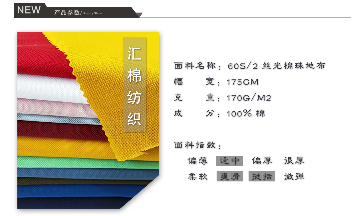 產(chǎn)品關(guān)鍵字:絲光棉珠地布,絲光棉布,絲光棉面料,絲光棉網(wǎng)眼布,珠地布