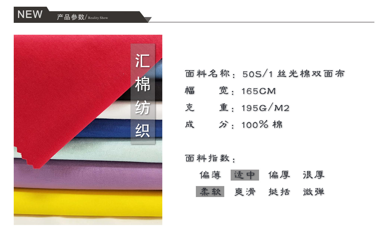 產品關鍵字:絲光棉布,絲光棉面料,雙面布,雙面汗布,絲光棉雙面布