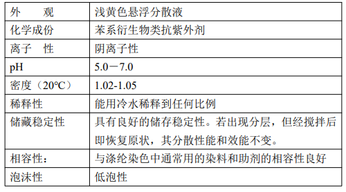 本產(chǎn)品是專用于滌綸織物的紫外線吸收劑,降低紫外線對(duì)滌綸紡織品