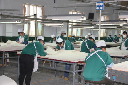 公司有脫膠、梳理、紡紗、準(zhǔn)備、織造、服飾5個(gè)生產(chǎn)車間,擁有從美國、日本、德國、法國、意大利、瑞士、比利時(shí)等國引進(jìn)的精梳機(jī)、自動絡(luò)筒機(jī)、轉(zhuǎn)杯紡紗機(jī)、并條機(jī)、無梭織機(jī)、電子提花機(jī)、平縫機(jī)、免燙焗爐等國際一流紡織、服裝加工和技術(shù)檢測設(shè)備1000多臺(套),其中:擁有國內(nèi)目前惟一一條從漢麻原麻脫膠至成品加工生產(chǎn)線。主要生產(chǎn)和經(jīng)營純漢麻、亞麻及混紡紗線、布,有機(jī)棉紗線、布,服裝、服飾、家紡等系列產(chǎn)品。年產(chǎn)麻及混紡紗線5000噸,坯布及面料1000萬米,服裝、家紡150萬件套。產(chǎn)品主要出口美國、歐盟、日本、韓國、香港等國家和地區(qū)。