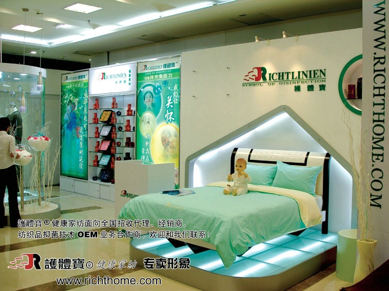 公司紡織品部秉承公司追求健康、環(huán)保產(chǎn)品品質(zhì)的理念,自公司成立以來,一直致力于“為廣大消費者營造高品質(zhì)的健康家居環(huán)境”——健康家紡的研究。公司和德國合作開發(fā)的“RICHTLINIEN(瑞特能)纖維養(yǎng)生技術(shù)”,是現(xiàn)代預防醫(yī)學最新成果與高分子科技的完美結(jié)合,它涉及到醫(yī)學、生物工程、高分子技術(shù)等多學科、多領(lǐng)域的最新科研成果,它是人類健康史上新的里程碑!其技術(shù)功效已通過國際權(quán)威機構(gòu)“Intertek Labtest”抑菌鑒定。