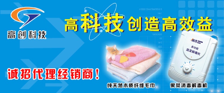 本公司產品具有極大的市場發(fā)展空間,特別是公司的主打產品,純天然植物纖維毛巾--竹木纖維毛巾,可以說帶來了一場毛巾的“革命”您只要擁有北京高創(chuàng)家居系列產品的經銷權,即可實現(xiàn)財富的輝煌!在此我們真誠希望與各界具有實力及遠大市場目光的客戶朋友合作共創(chuàng)我們的美好未來。