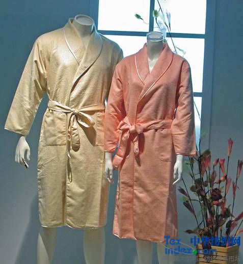 嘉興——中國(guó)絲綢之府,位于杭嘉湖三地交界處,以其獨(dú)特的氣候和地理壞境,培育出了優(yōu)質(zhì)的桑蠶繭。人們用世代相傳的手工藝結(jié)合現(xiàn)代高科技工藝,制成了各種天然蠶絲制品,它的“舒、暖、柔、輕、寧”正成為當(dāng)今家居的傳世珍品。蠶絲絨睡衣,面料選用輕薄優(yōu)質(zhì)的桑蠶絲經(jīng)多種工藝處理,手感柔軟,突出都市人性化特征。睡衣的特點(diǎn)是居家任何場(chǎng)合都可穿著,同時(shí)飄逸的感覺(jué)給女性平添一份嫵媚;給男人一份自信。產(chǎn)品藝術(shù)性強(qiáng),做工考究,它的每款設(shè)計(jì)都傳播著古典華貴的文化。
